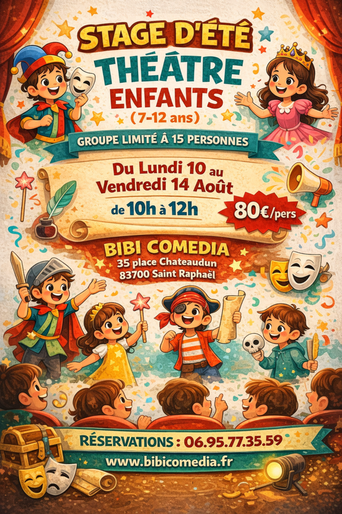 Dans une ambiance bienveillante et dynamique, les enfants développent leur imagination, apprennent à s’exprimer avec assurance et découvrent la magie du spectacle vivant.